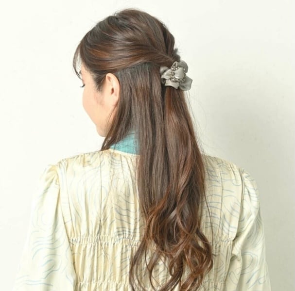 ビジュー&パール シュシュ ヘアアクセサリー(ブラック/グレー)